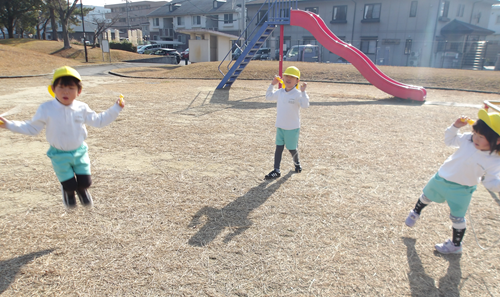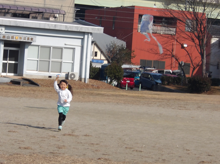 凧あげで遊んだお友だちは、コツを掴んだようでうさぎ組さんにも「遠くまで走ると凧が上がるよ~」とお姉さんらしい姿がありました✨