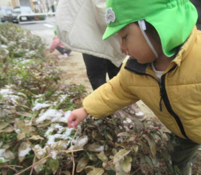 そら・ほし組さんたちは、あったかいお洋服を着て雪遊びを楽しみました。