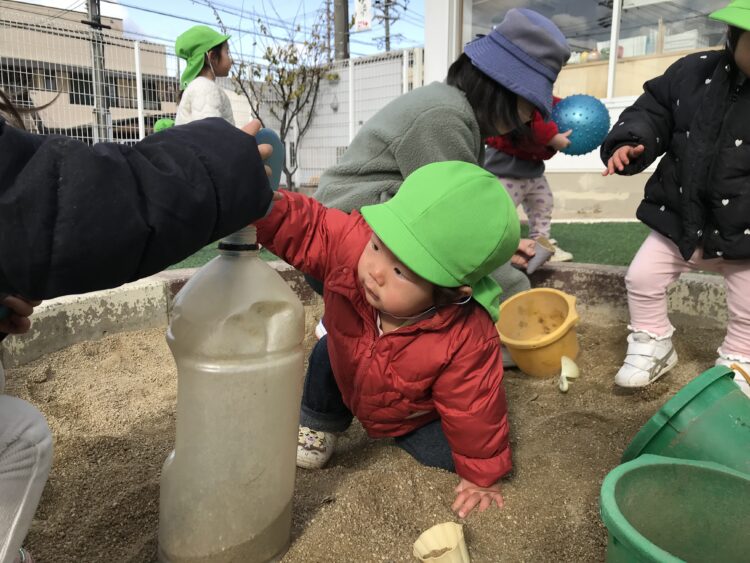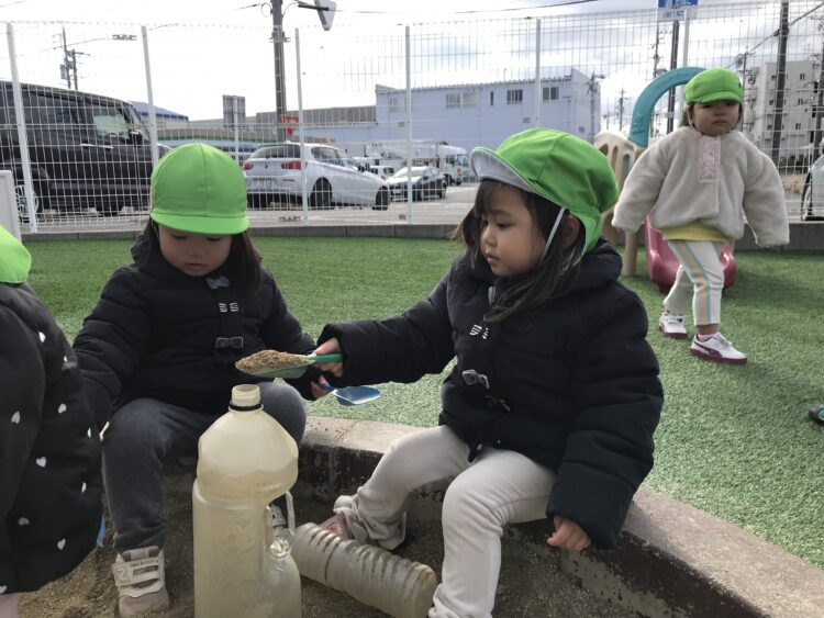 砂場で砂あそびをしたり・・・