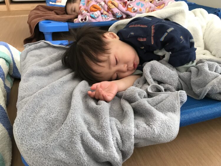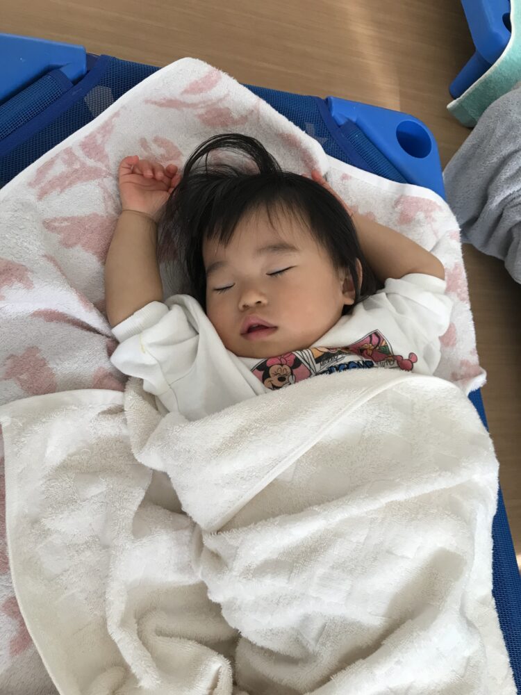 お給食を食べて、ぐっすり夢の中かな![]()