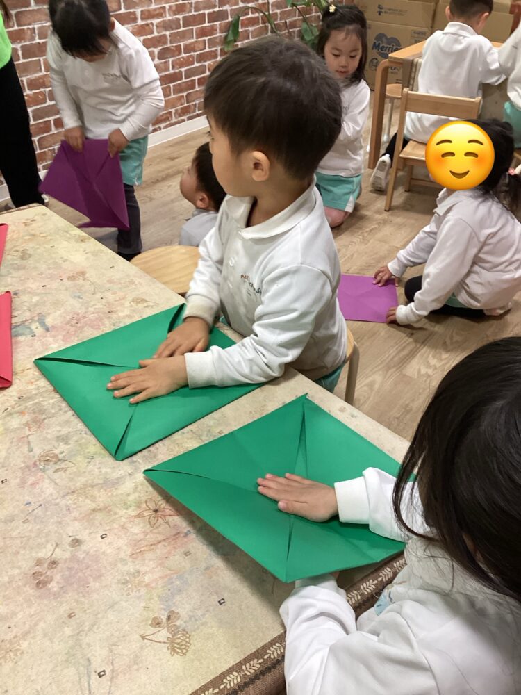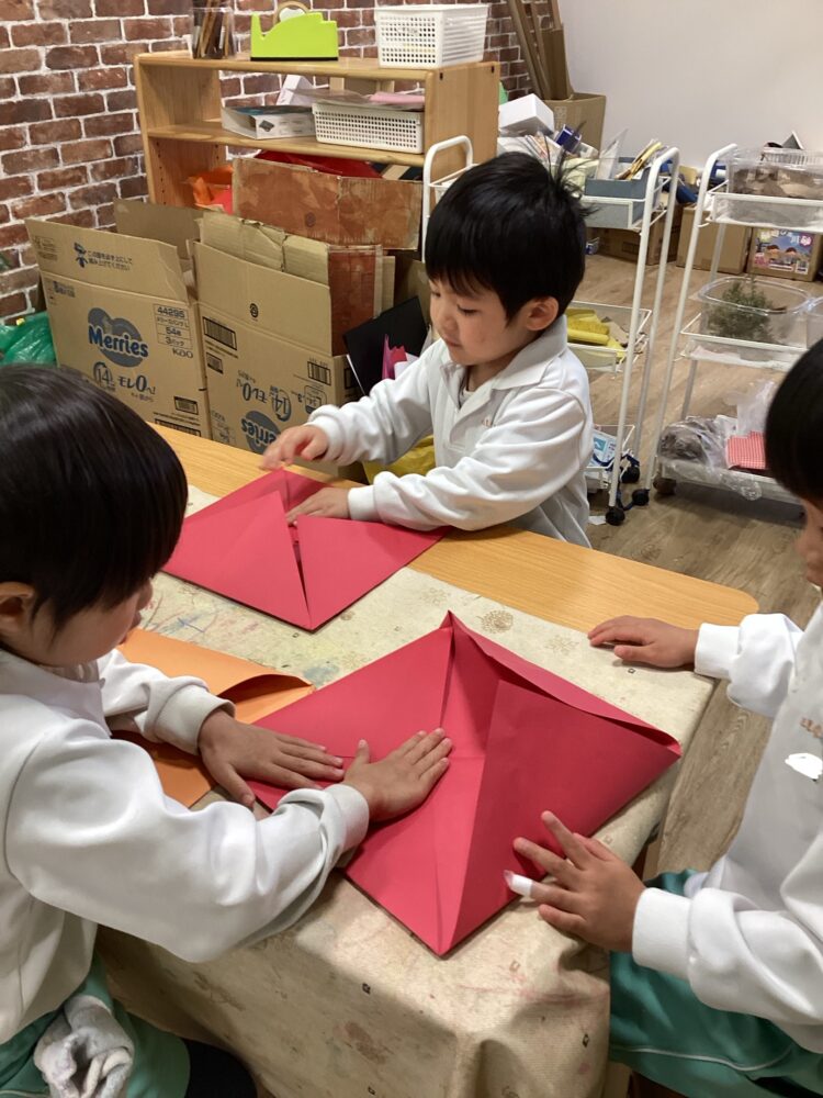 見本を見たり、お友だちと教え合いをしながら豆箱を作りました![]()