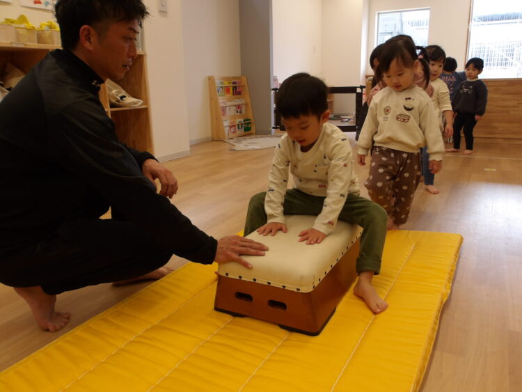 跳び箱では腕を伸ばすことを意識しながら跳ぶ練習!