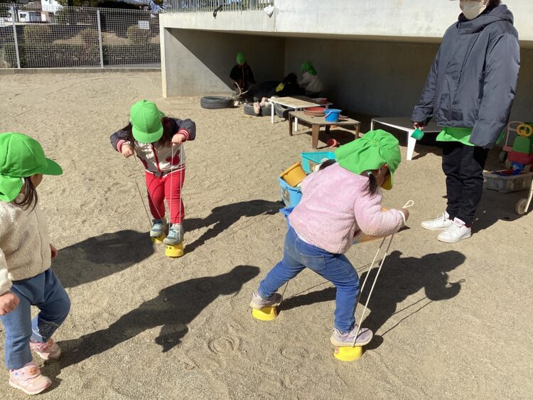 すくすくさん・のびのびさんは、園庭で遊びました![]()