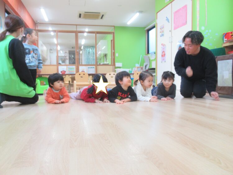 クラス毎に、ヘビやウサギ、ライオン、ウマになりきって、壁までタッチしました🐍🐇🦁🐴