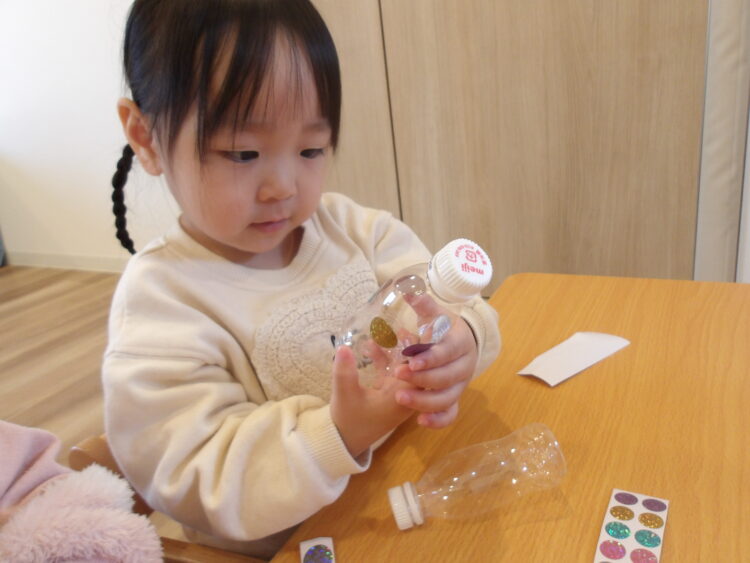キラキラのシールをペタペタ…✨