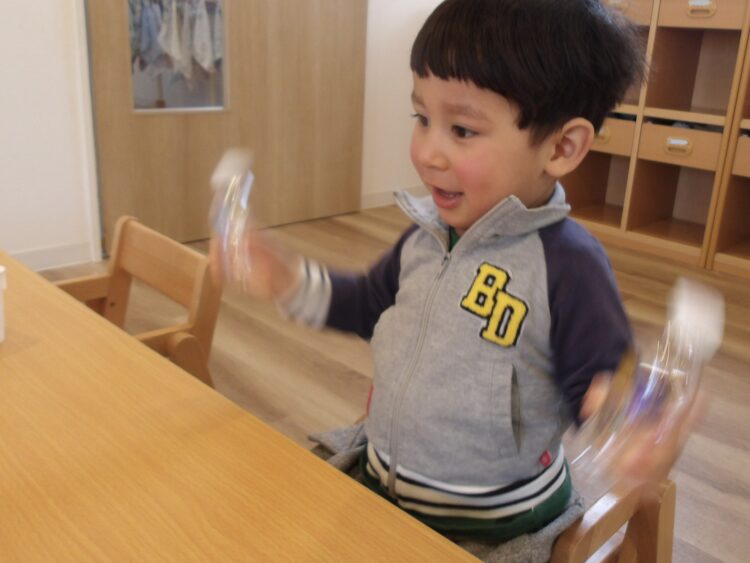 今日は、お部屋であそびながら順番に製作をしましたよ。