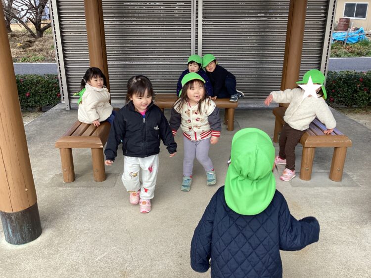 屋根の下に集まった子ども達で何やら楽しそうな雰囲気![]()