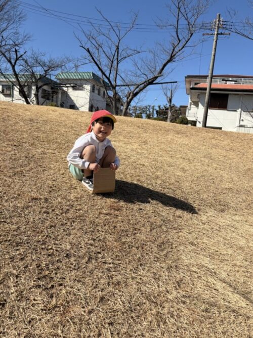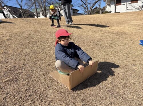 こんなに小さい段ボールでも滑れるお友だちを発見💡
