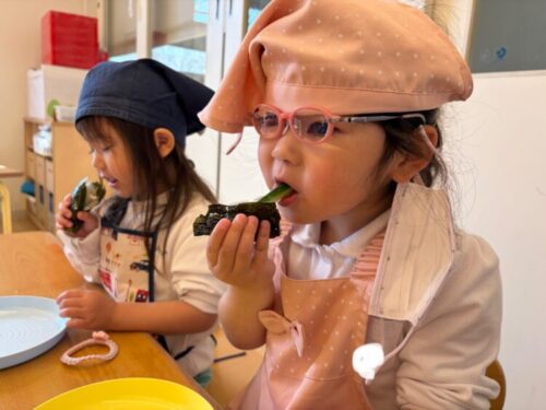 今日はクッキングで恵方巻きを作りました👹
