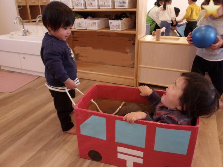 お友だちと交代で車を動かしたり、、(重くてなかなか動かないけれど💦)