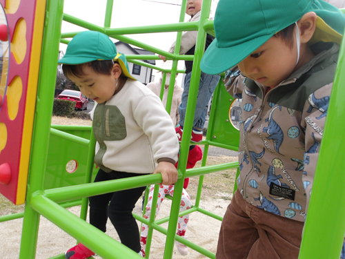 ジャングルジムで高いところまで登ってみたり、あひるさんはどんどん体力がついてきます😠💪