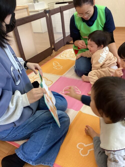 みんなで絵本に手を伸ばしてオレンジをパクパクッ🍊