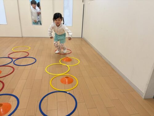 くま組は青色は両足、黄色は右足、赤色は左足と考えながらジャンプしました![]()
