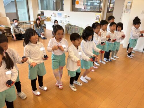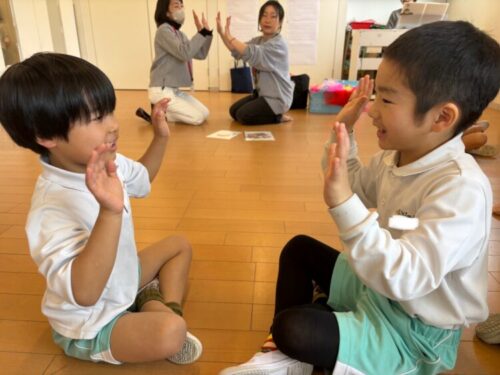 こちらはバレンタインの季節ということで、チョコ🍫と言いながらリズム打ちをしていました🥰