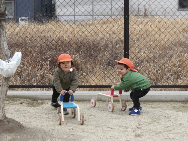 コンビカーでお友だちと競争をしていましたよ!