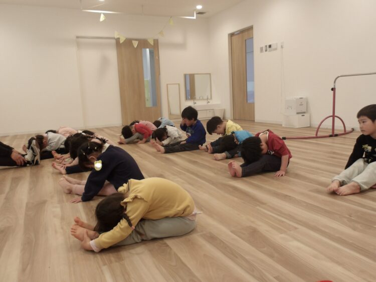 初めての柔軟体操もしましたよ。