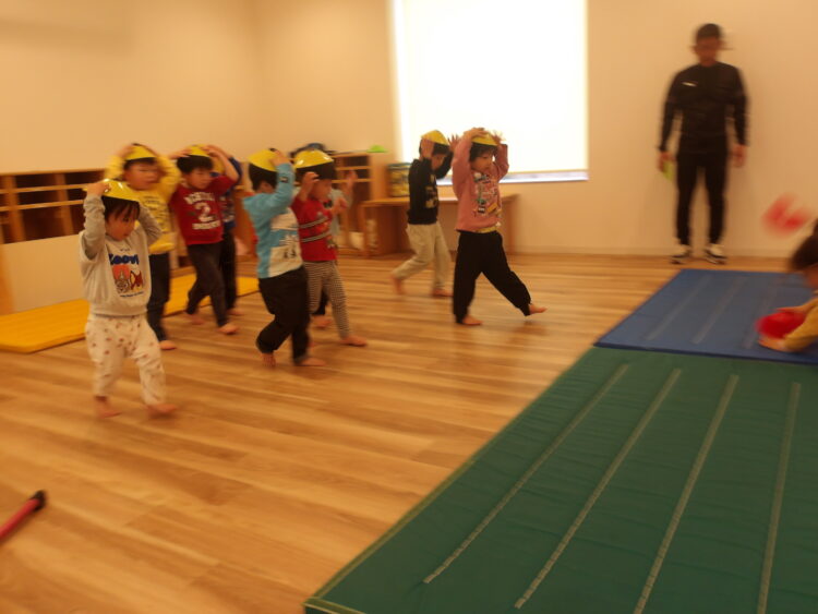 床に置いたりと、バランス力を養う体操をしました。