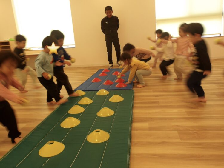 ボールを取りたい、勝ちたい早る気持ちを抱きつつ、講師の指示をよく聞き、体を動かそうとする子どもたちでした。