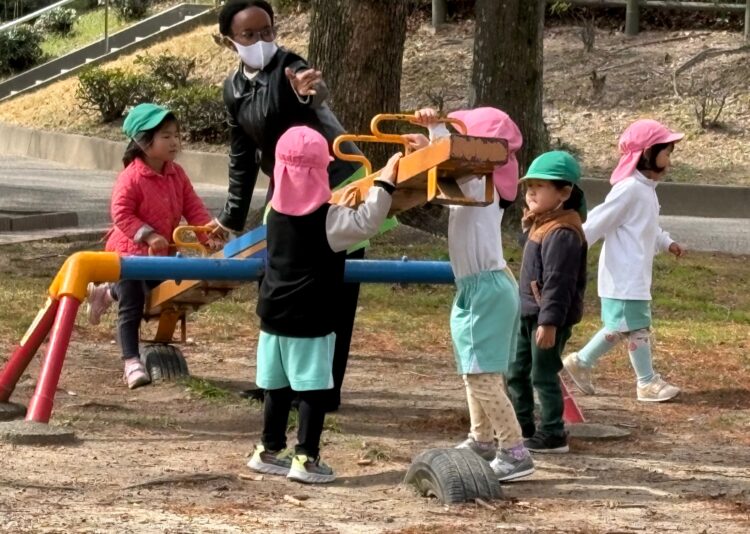 みんなで滑り台をしたり、シーソーをしたり…