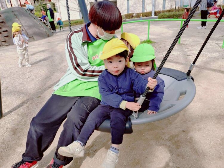 円盤の遊具に乗りゆらゆらとしていました![]()