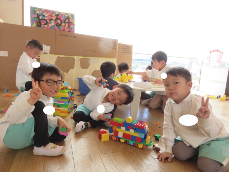 お友だちと協力して大きな作品を作っていました!![]()