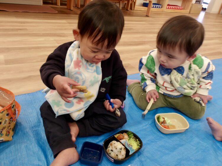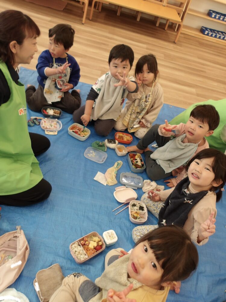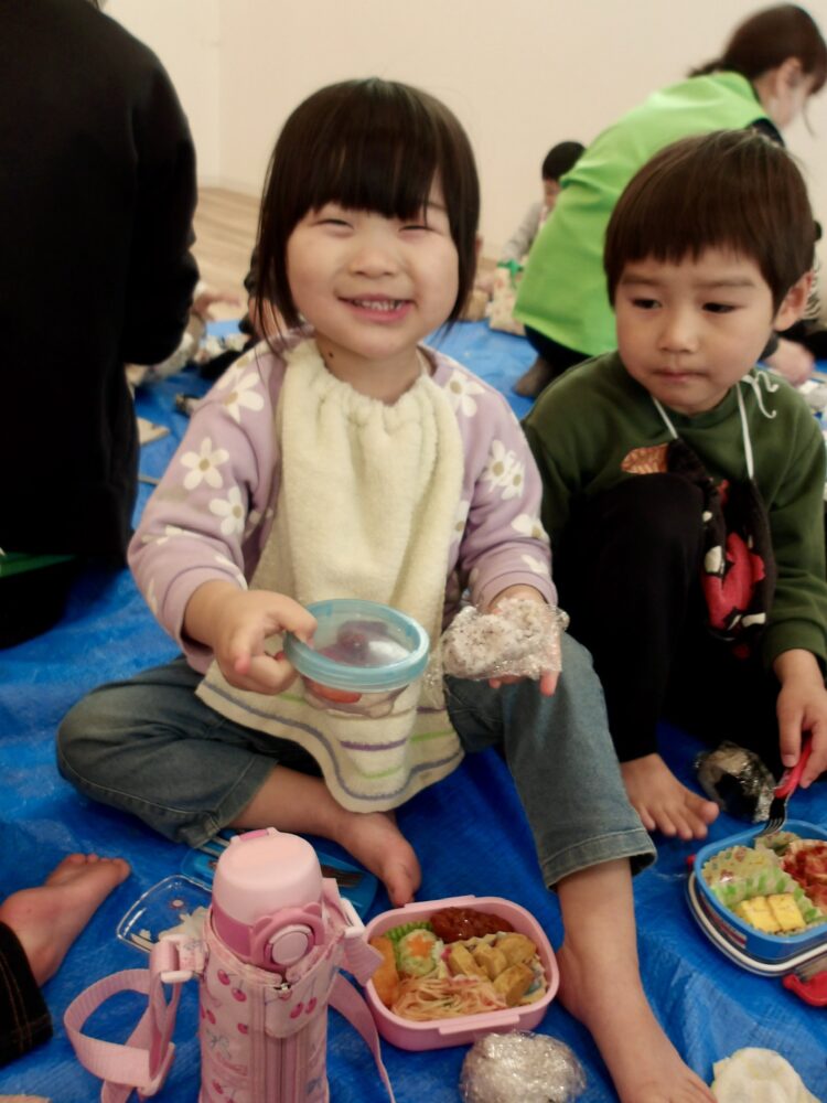 保育園に戻ると、いよいよお弁当の時間!お友だちのおかずも気になりますね👀こんなの入ってたよ〜と笑顔でお弁当を見せてくれましたよ。