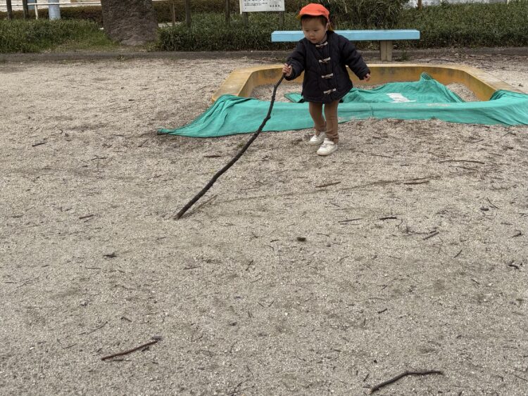 今日は大きな木の棒や葉っぱがたくさんの木の棒を持って練り歩き、色々なところを散策している子もいました![]()