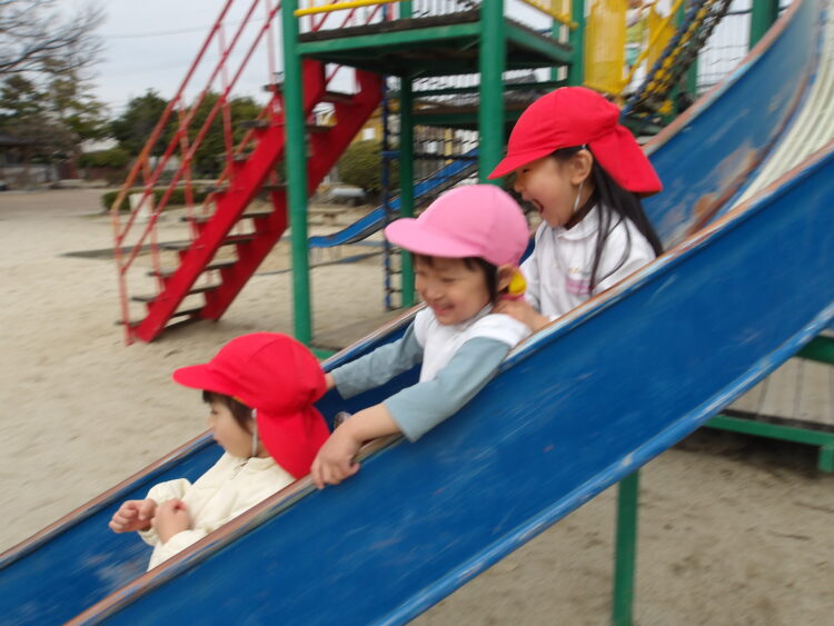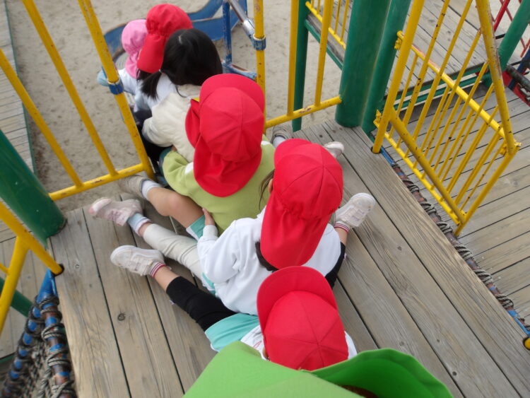 滑り台では、お友だちと連なって滑ることが楽しくて、長い列ができていました😊