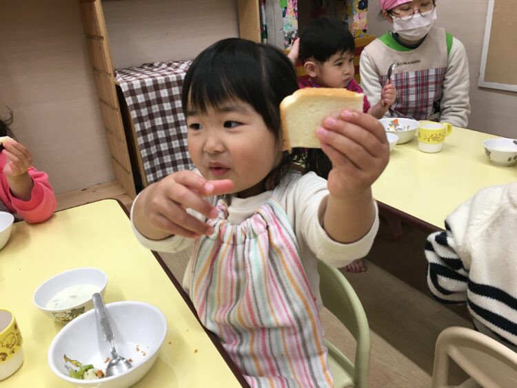 こちらは、パンがなんの形に見えるか議論をしています。