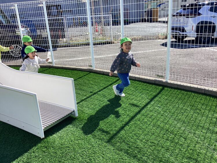 勝川園 のブログホーム > 園のブログ > 外遊び🏃♀️ 2026.3.10今日も元気いっぱいな子どもたち☺️皆んなで追いかけっこをして楽しんでいます🏃♀️ カメラを向けるとポーズをしてくれました📷 砂場の近くで遊んだり 滑り台に登ったり、たくさん遊んだね🛝