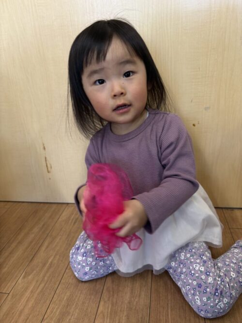 シフォンをお花に見立てて、”おはながわらった”の歌に合わせてフレーズというものを学びました❗️