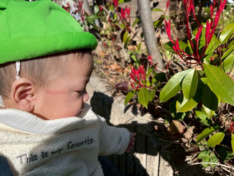 外に出ると、きょろきょろと周りを見渡したり、気持ちよさそうな表情を見せてくれる姿も見られました。保育士と一緒にお話をしながら、穏やかな雰囲気の中で過ごしています。