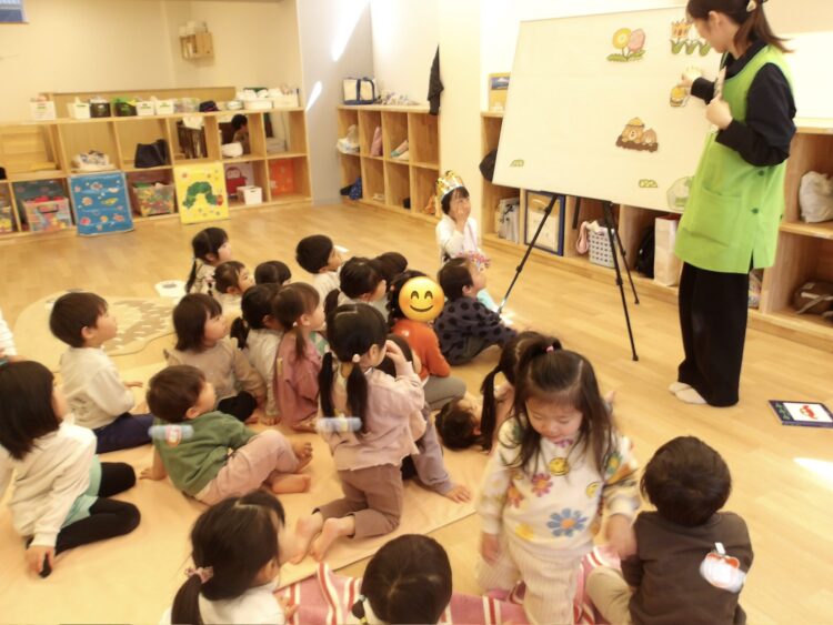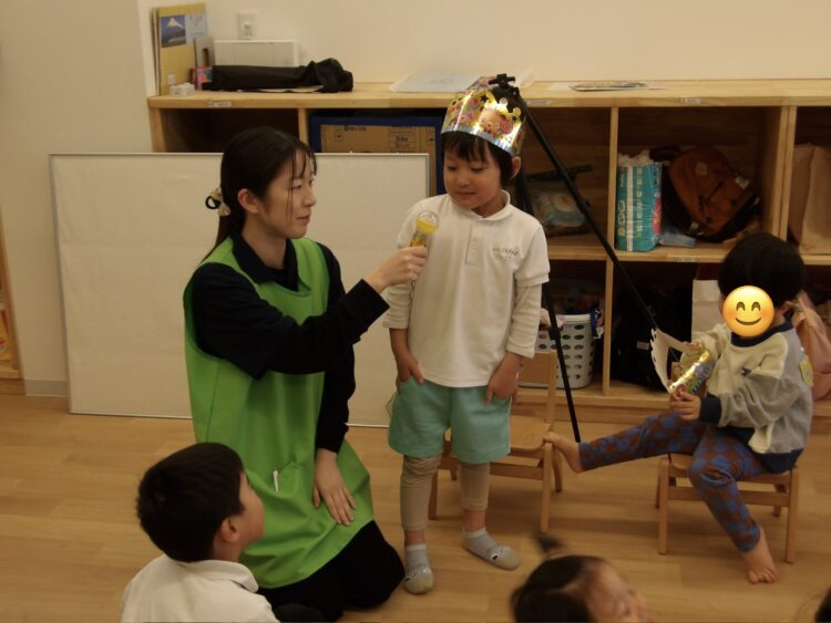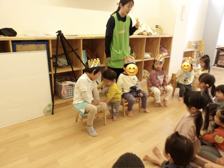 今日は、3月生まれのお友だちのお誕生会でした。お誕生日のお友達はみんなの前に並んで座り、嬉しそうにしている子やちょっぴり恥ずかしそうにしている子もいました。
