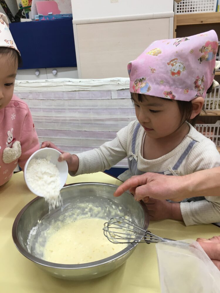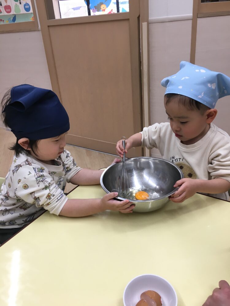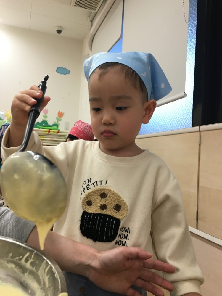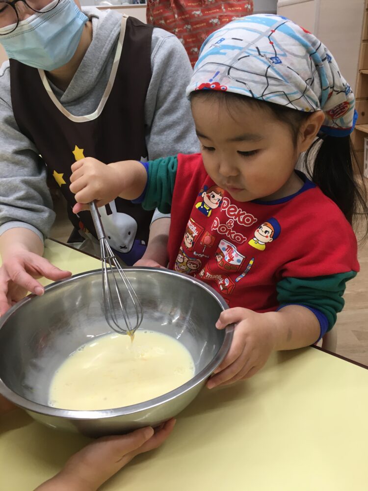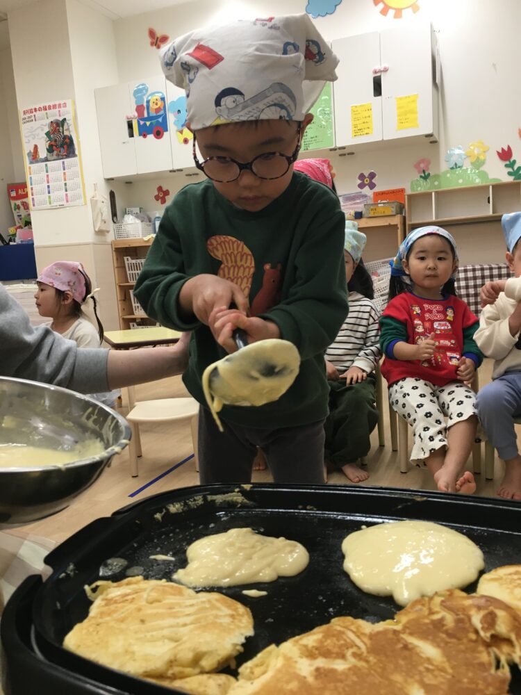 今日はクッキングでホットケーキを作りました😉
