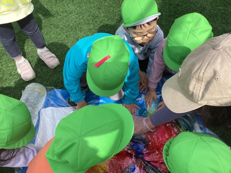 今日はお外で絵の具遊びをしました🎨