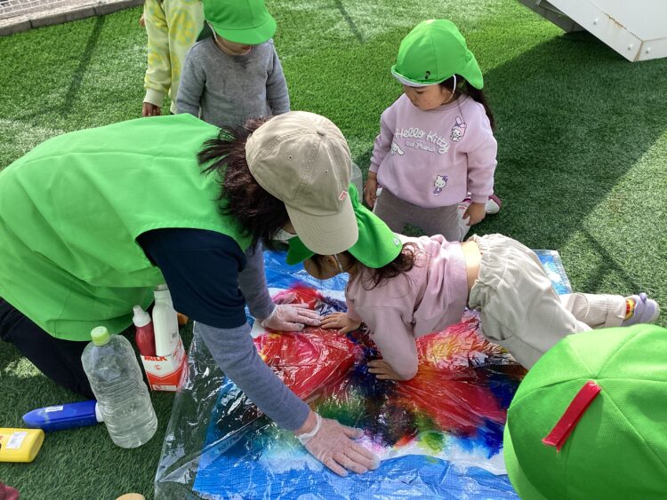 絵の具の感触に楽しそうな子どもたち🧒👦