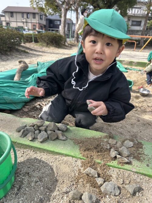 お友だちと一緒に集めた石でお店屋さん💁♂️「先生見て‼️」ニコニコ笑顔で見せてくれました☺️
