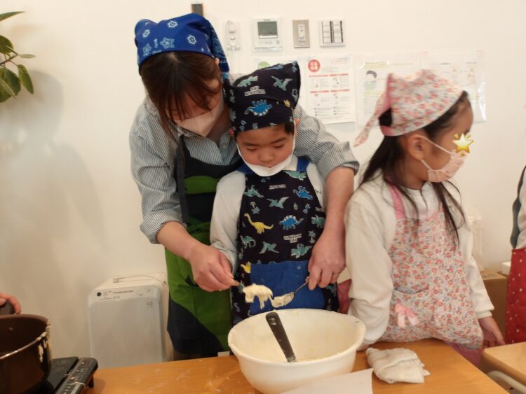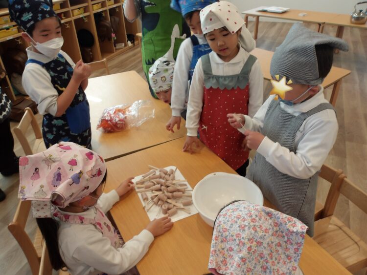 たいよう組から保育参加に来ていた3人の親御さんの頼もしいサポートもありながら、みんなで楽しく作ることができましたよ。