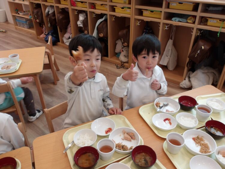 散歩から帰ってきたそら・にじ組の子もペロリと完食する子が多かったです♩