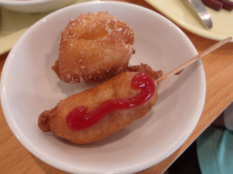 アメリカンドッグと即席シュガードーナツの完成です🌟