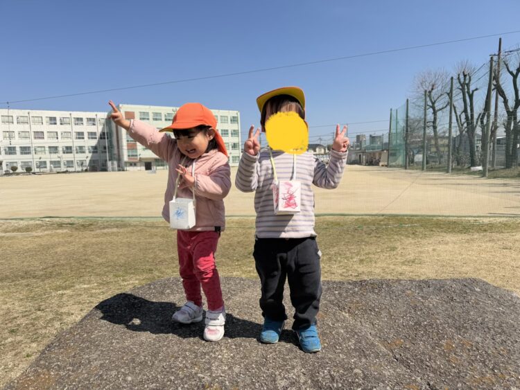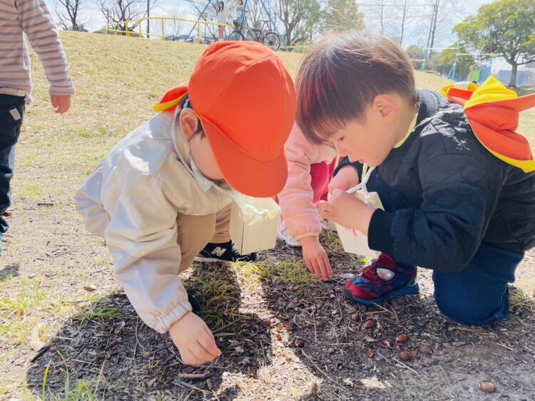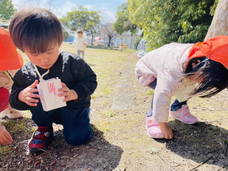 自分たちでお絵描きをして作ったカバンにどんぐりをたくさん集めて「先生みて〜!」と見せてくれる子も😊