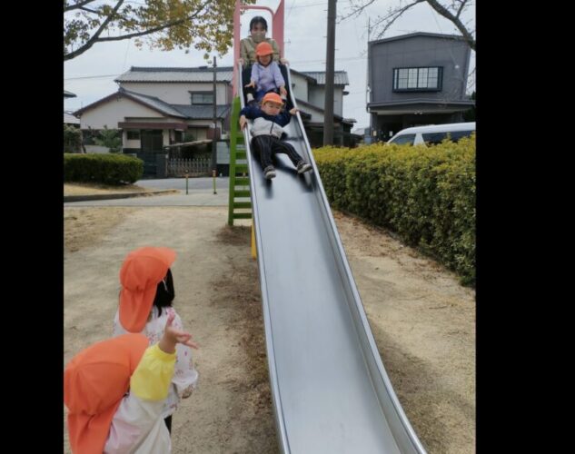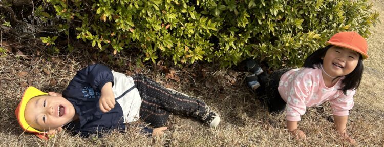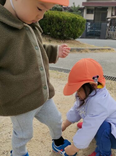 植田山公園に到着後、いってきまーす!と元気にみんなそれぞれの遊びに向かいましたが、、あれれ?💦靴が脱げちゃったー😭と困っているお友だちを見つけてすぐにお友だちのお手伝いに来てくれました🥹