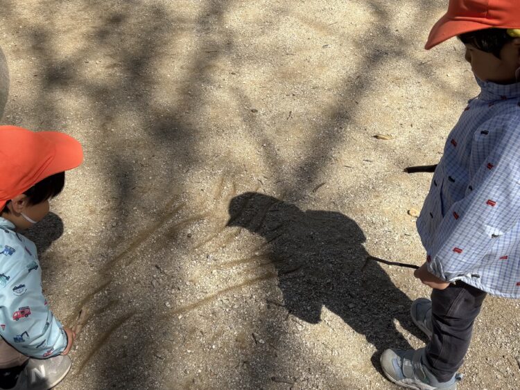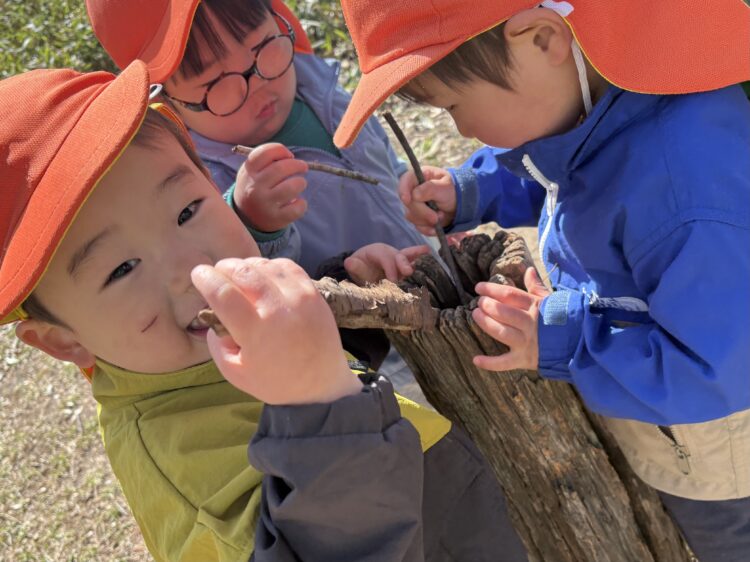 先生やお友達と、小さな切り株🪵で何やらプチお料理を作っていましたよ!!