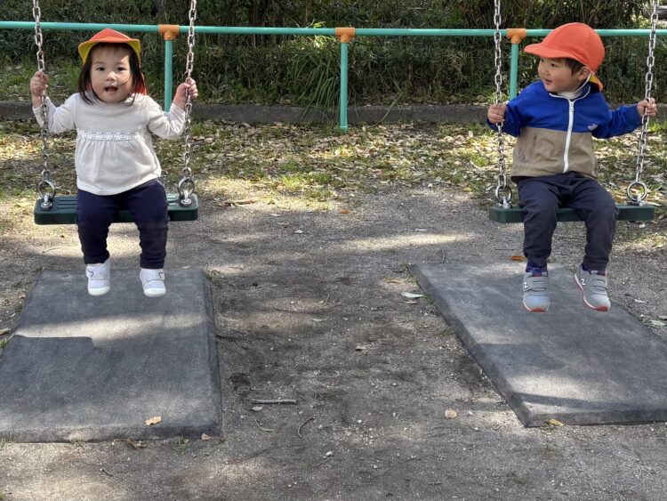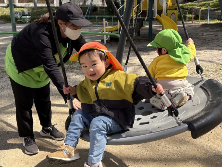先生に乗りたかったブランコに乗せてもらって嬉しそうですね![]()