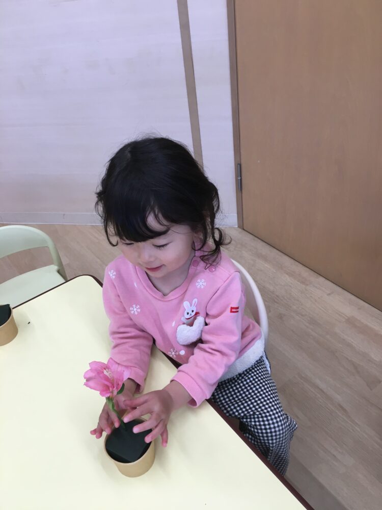 どのお花を挿そうかなと考えながら、楽しそうに挿していましたよ