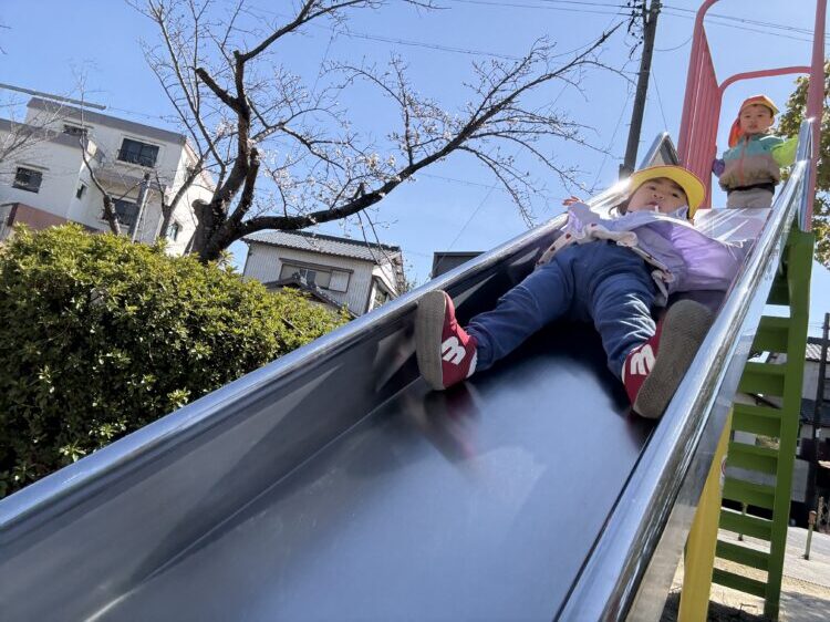 滑り台では寝転がって「シュー!」と滑る子🛝
