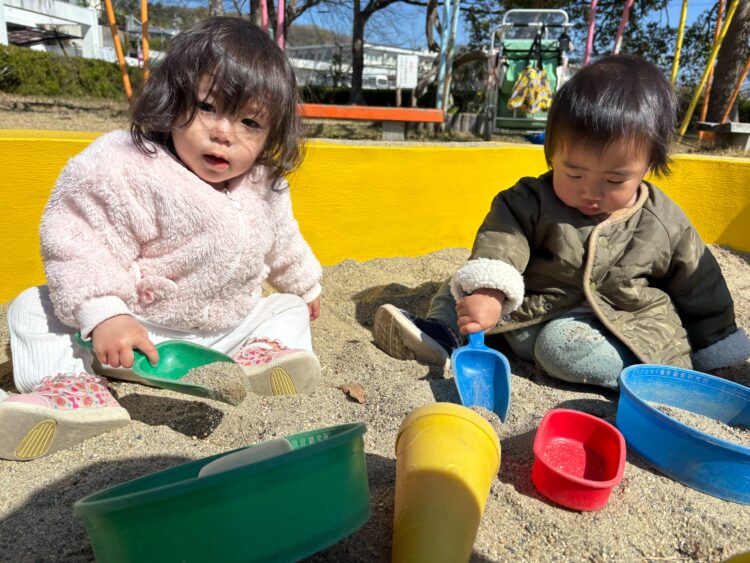 砂場ではスコップやカップを使って砂遊びを楽しみました😊