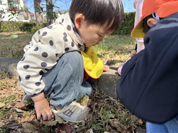 草むらでは「ダンゴムシいるかな?」と虫探しに夢中👀✨