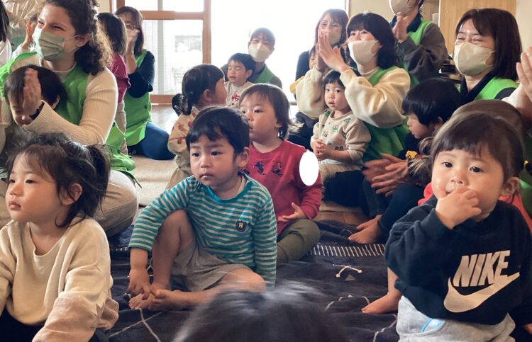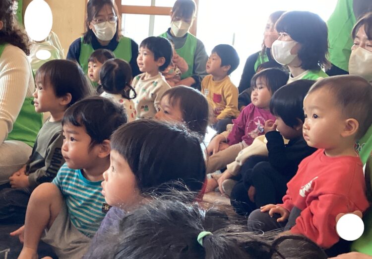 にこにこさん・すくすくさんは、カーペットに座って参加しました。
