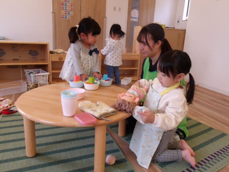 お店屋さんに成りなりきっている子や、お人形のママになりきっている子もいましたよ。